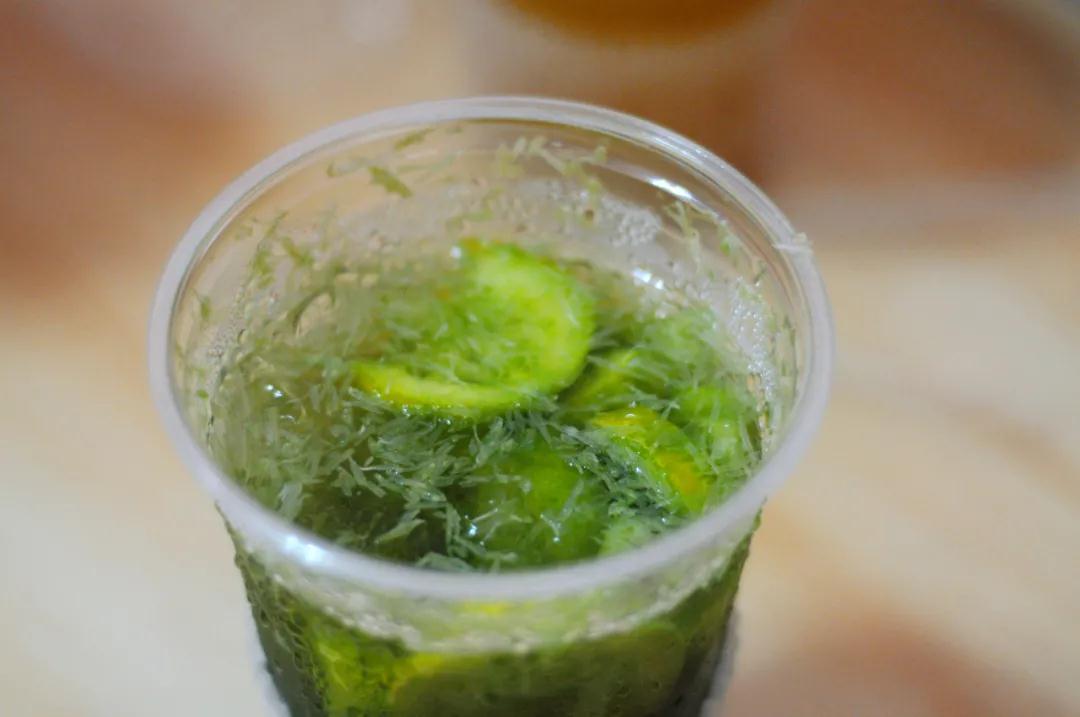 其次是它的翠绿色彩。为何发“绿”?这是因为很多茶饮店使用的是泰式绿茶,而泰式绿茶里面含有食用色素,所以才有了镜头下这种通透的色彩。也有一些茶饮店加入了苦瓜汁、羽衣甘蓝等成分,来打造这份翠生生的凉意。